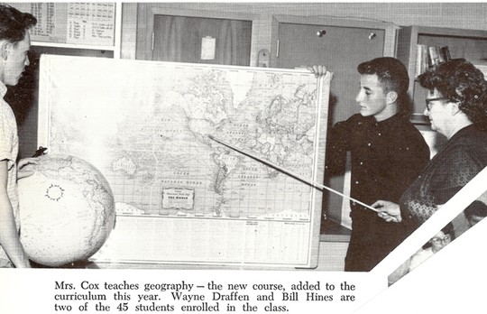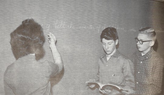 In English class Sheila O'Connor punctuates a sentence correctly for Gary Bowers & Paul Bennett.