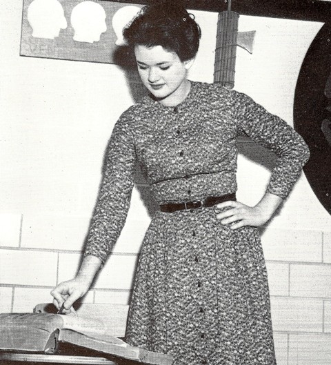 Nancy Young & Esther Grubbs learn the proper way to press clothing in Home Ec. Class.
