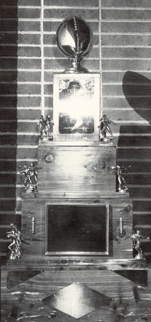 Miss Merten introduced speed ball to all the girls' phys. ed. classes. Martha Adams is executing a kick off.